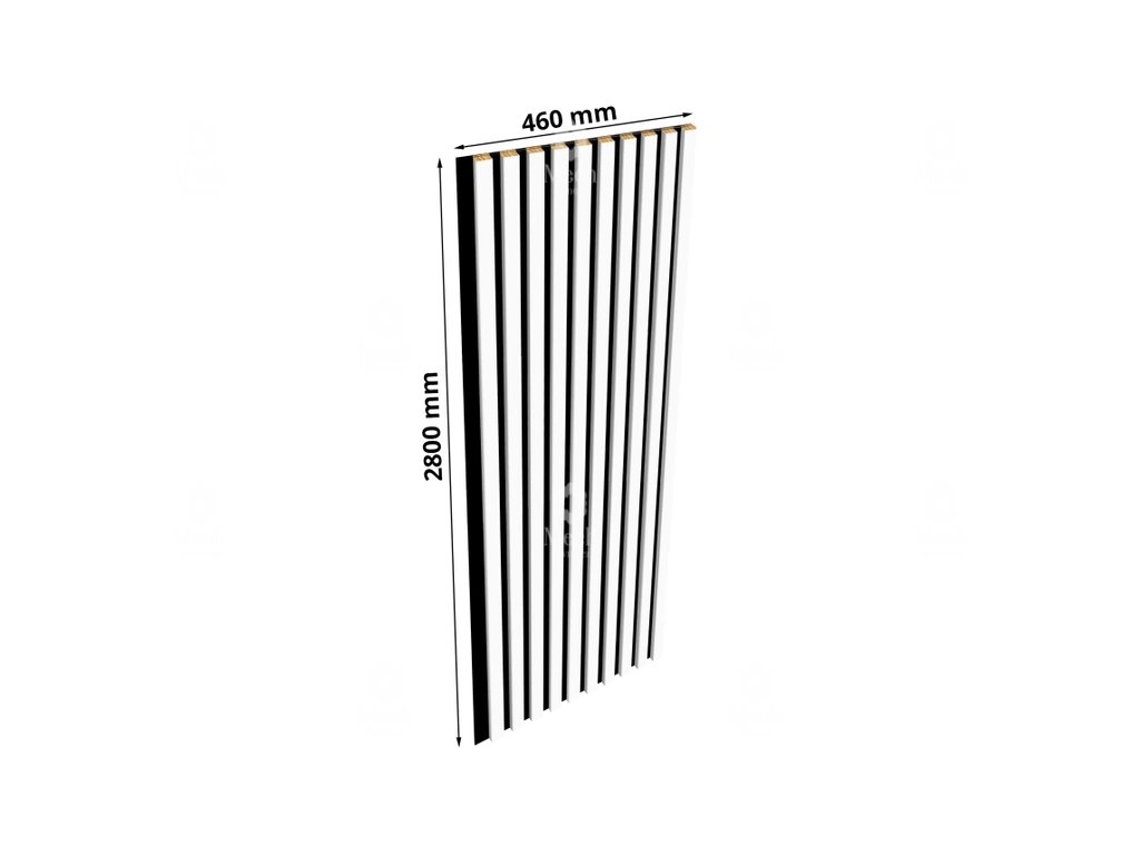 Napojovací panel – jedna strana začíná filcem a druhá končí lamelou, což umožňuje snadné napojení modulů do celistvé stěny bez viditelných přechodů. Rozměr: 46 cm × 280 cm.
