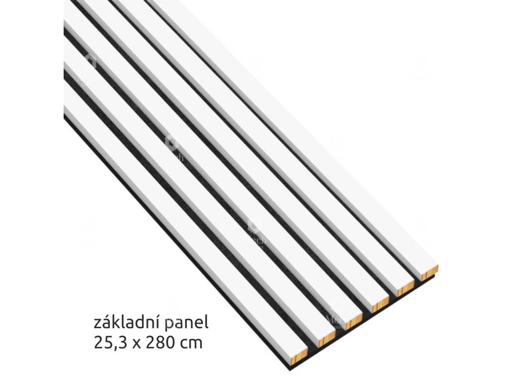 Základní panel – obě strany (levá i pravá) končí lamelou. Rozměr: 25,3 cm × 280 cm.