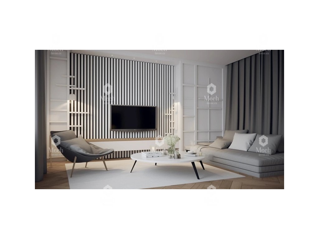 Díky univerzálnímu vzhledu lze panely kombinovat i s jinými barvami a dekory. Bílé lamely jsou ideální pro minimalistické interiéry, kde mají vyniknout čisté linie a světlo.