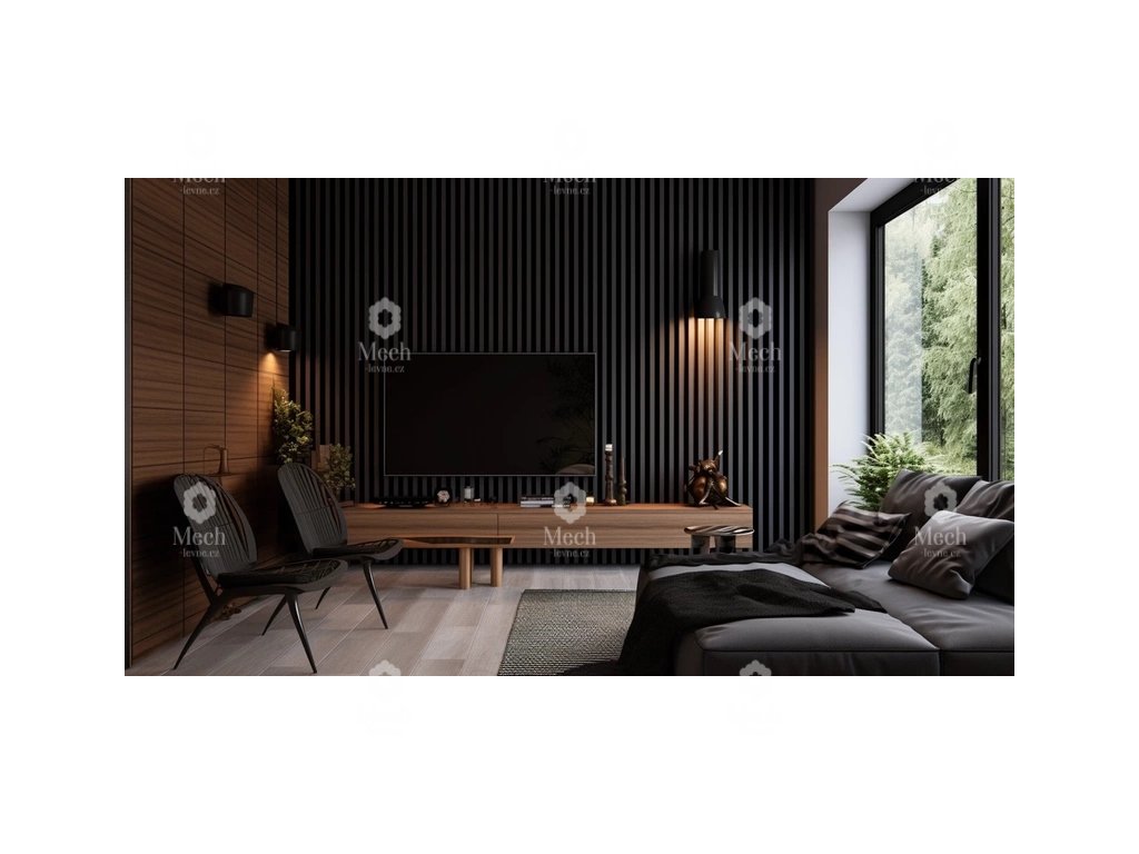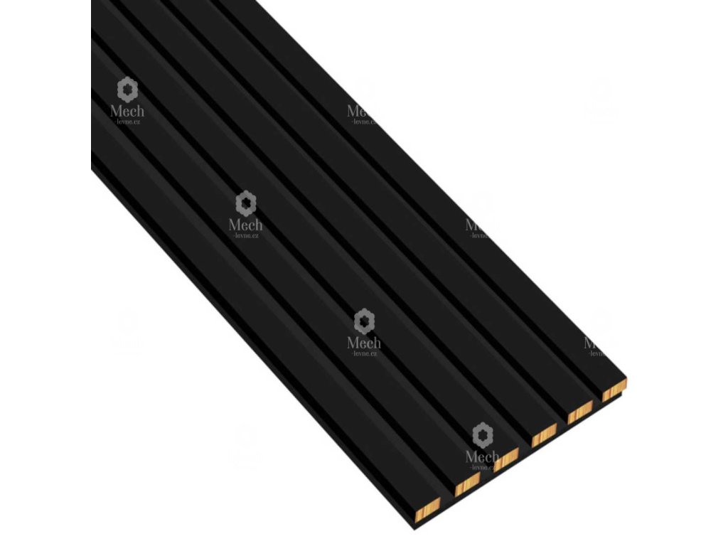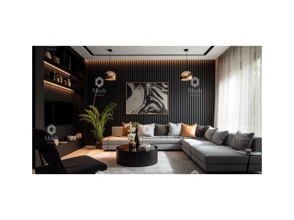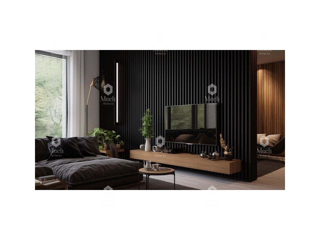 Díky univerzálnímu vzhledu lze panely kombinovat i s jinými barvami a dekory. Černé lamely jsou ideální pro minimalistické interiéry, kde mají vyniknout čisté linie a design.