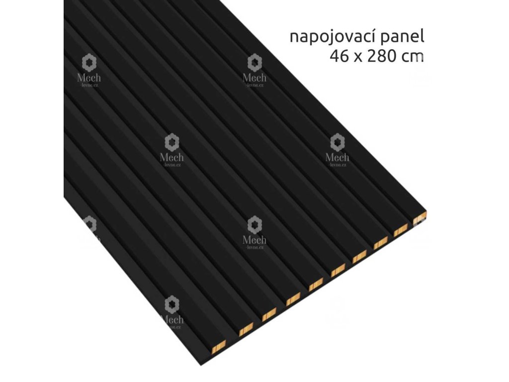 Napojovací panel – jedna strana začíná filcem a druhá končí lamelou, což umožňuje snadné napojení modulů do celistvé stěny bez viditelných přechodů. Rozměr: 46 cm × 280 cm.