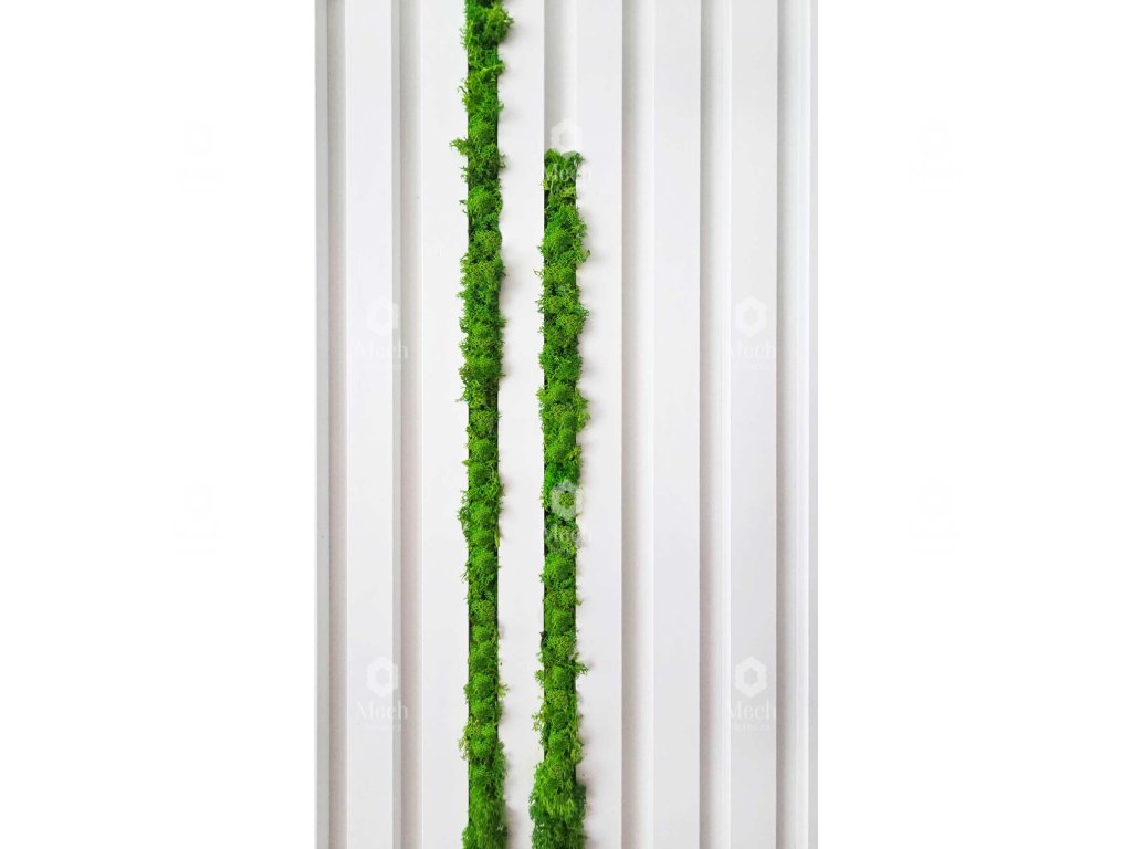 Proměňte svůj interiér ve světlý a vzdušný prostor díky lamelovým panelům oživených o sobí mech (lišejník). Tyto panely okamžitě opticky zvětší místnost, sjednotí ji a podtrhnou čistý minimalistický design. Mezery mezi lamely jsou vylepeny sobím mechem v různých délkách k docílení moderního a elegantního vzhledu prostoru.Lamely jsou pevně uchyceny na bílé podkladové desce, která jim dodává stabilitu a zároveň zvýrazňuje jejich světlý vzhled. Lamely působí nadčasově, čistě a snadno se kombinují s ostatními barvami i přírodními materiály v interiéru. Sobí mech zlepšuje akustické vlastnosti.
