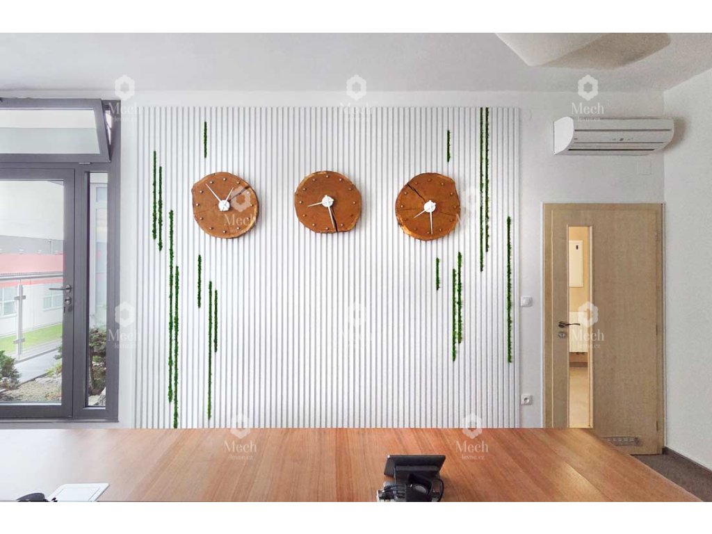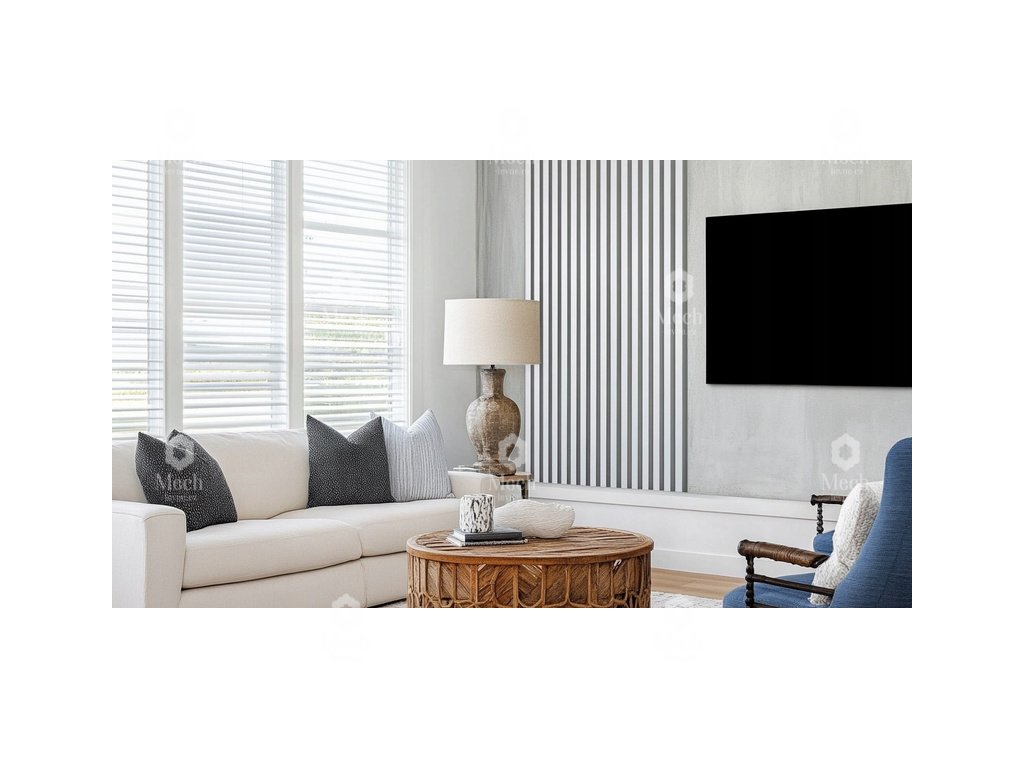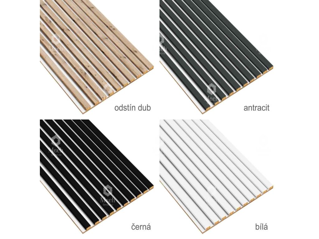 Snadná montáž a variabilita:Díky tomu, že jsou lamely již upevněny na panelu, je instalace velmi snadná. Panely stačí přilepit přímo na zeď nebo přichytit vruty. Spojovací moduly umožňují propojení více panelů bez viditelných přechodů a vytvoření souvislé plochy přes celou stěnu.