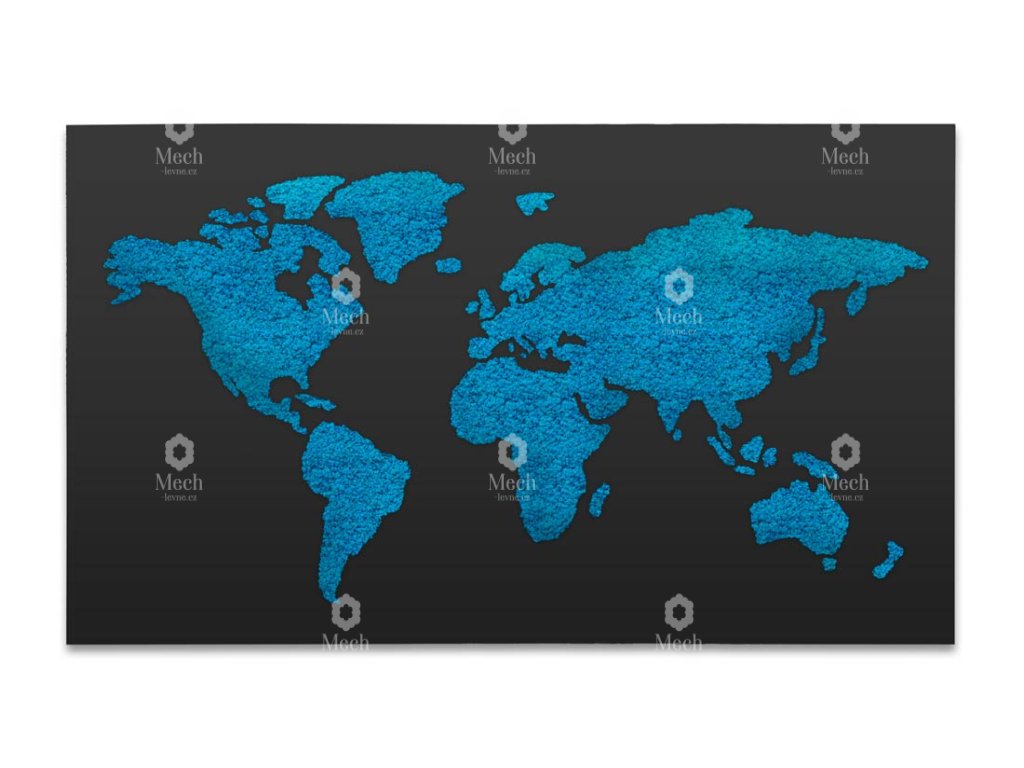 Upozornění: Jedná se o dekorativní mapu, nikoli přesné geografické znázornění. Mech je přírodní materiál, a proto není možné detailně zobrazit všechny státy, hranice či jejich přesnou polohu. Každá mapa je originálním uměleckým dílem s jedinečným přírodním vzhledem.