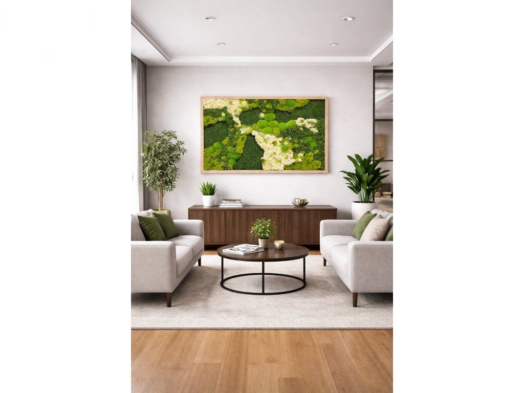 Oživte svůj interiér pomocí moderních obrazů a dekorací, které jsou vyrobeny ze stabilizovaného mechu a vneste tak kousek přírody přímo do svého domova.