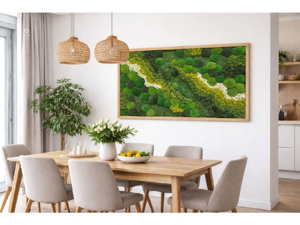 Oživte svůj interiér pomocí moderních obrazů a dekorací, které jsou vyrobeny ze stabilizovaného mechu a vneste tak kousek přírody přímo do svého domova.
