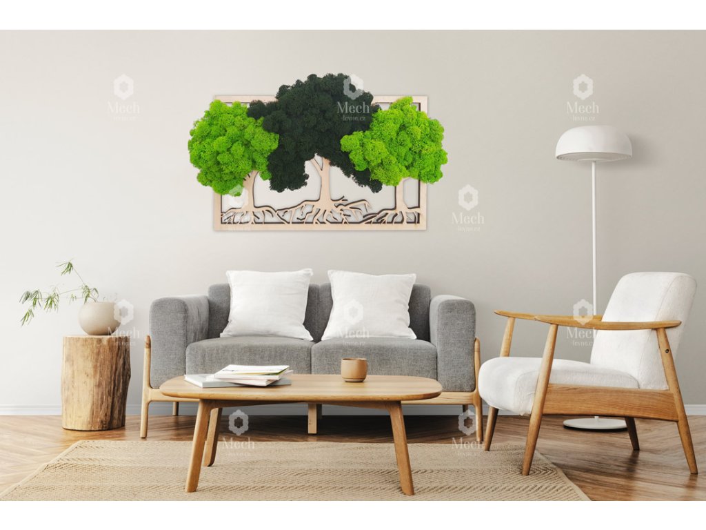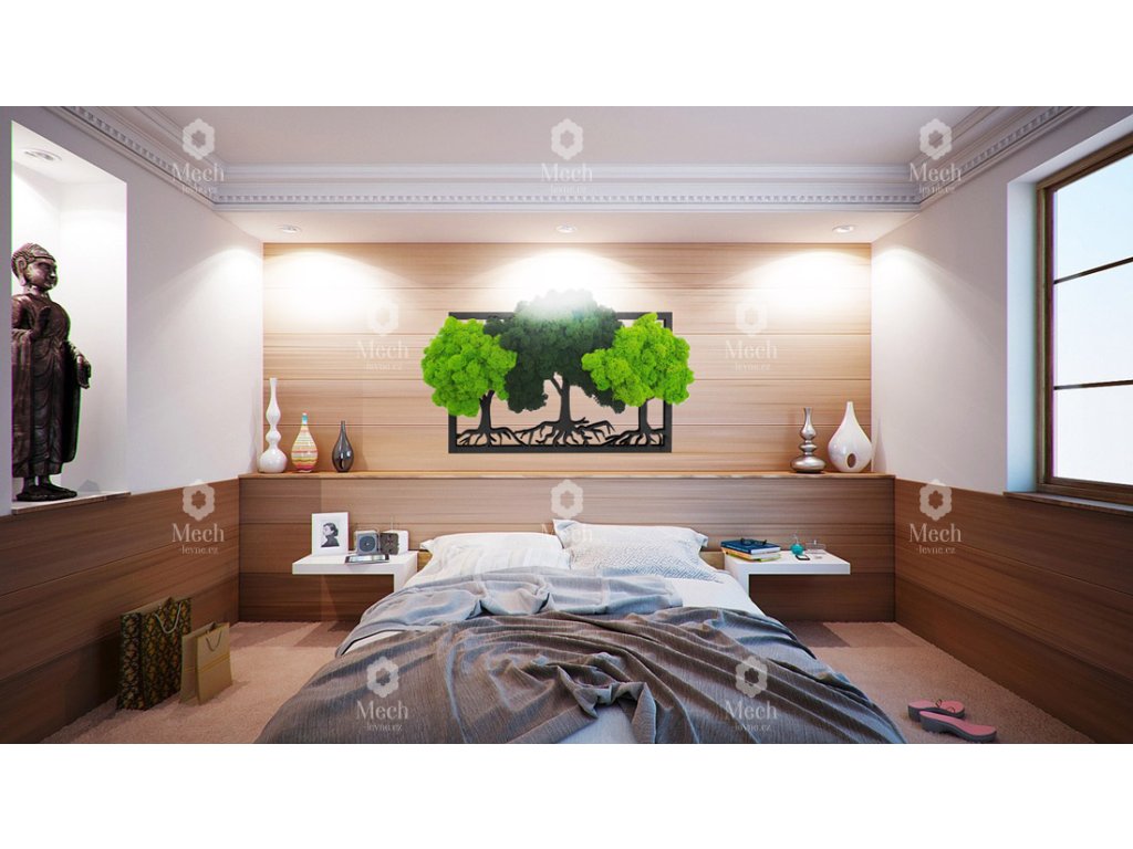 Mechové obrazy a dekorace se hodí do každého interiéru, ať už do domácnosti, kanceláře, či velkých komerčních prostor. Obraz opticky zvětšuje prostor, pohlcuje hluk v interiéru, je antistatický a hypoalergenní. Působí velice zklidňujícím a harmonickým dojmem. Navodí pocit klidu a zútulní každý prostor. Dlouhou životnost a původní vzhled zajistíte jednoduše tím, že obraz umístíte tak, aby se vyhnul přímému slunečnímu záření, topení, klimatizaci, krbu apod. Velmi důležité je dodržet v místnosti přirozenou vlhkost vzduchu. Podrobnější informace se dočtete zde.
