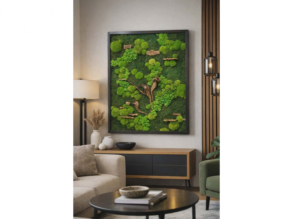 Oživte svůj interiér pomocí moderních obrazů a dekorací, které jsou vyrobeny ze stabilizovaného mechu a vneste tak kousek přírody přímo do svého domova.