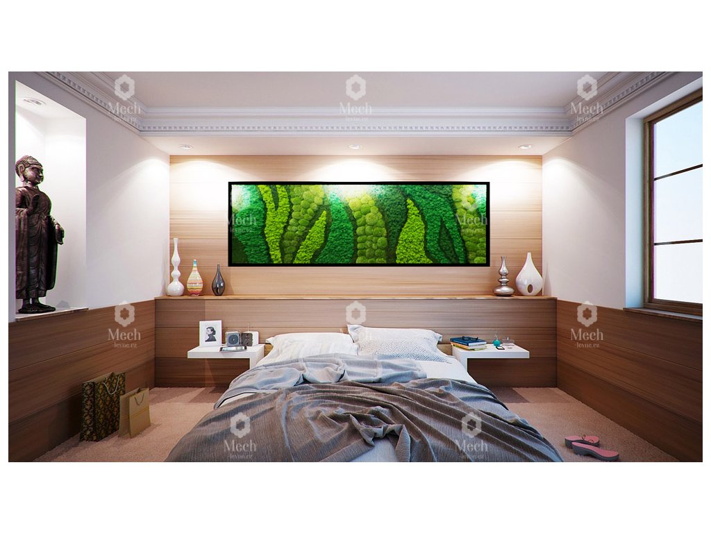 Mechové obrazy a dekorace se hodí do každého interiéru, ať už do domácnosti, kanceláře, či velkých komerčních prostor. Obraz opticky zvětšuje prostor, pohlcuje hluk v interiéru, je antistatický a hypoalergenní. Působí velice zklidňujícím a harmonickým dojmem. Navodí pocit klidu a zútulní každý prostor. Dlouhou životnost a původní vzhled zajistíte jednoduše tím, že obraz umístíte tak, aby se vyhnul přímému slunečnímu záření, topení, klimatizaci, krbu apod. Velmi důležité je dodržet v místnosti přirozenou vlhkost vzduchu. Podrobnější informace se dočtete zde.